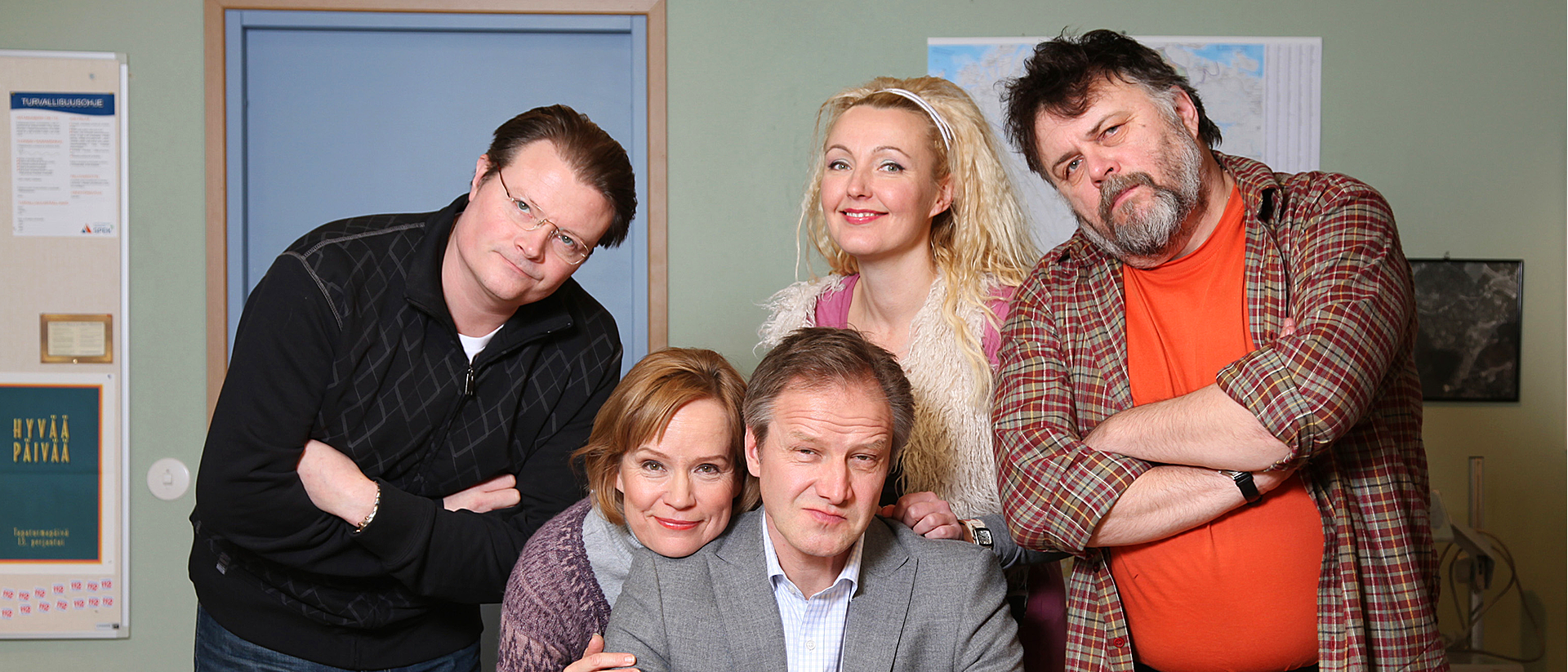 Header Card Description: Satiirinen komediasarja politiikan maailmasta. Kuvitteellinen ja värikäs Ihmisten puolue kokoontuu kerran viikossa puimaan ajankohtaisia asioita ja hiomaan strategioita. Kuria kokouksissa pyrkii pitämään puolueen puheenjohtaja ja perustajajäsen, diplomi-insinööri Tapani Riihimäki. Käsik. Atte Järvinen ja Reino Portimo, o: Atte Järvinen. N: Taneli Mäkelä, Kari Hietalahti, Mari Perankoski, Asko Sahlman, Kaija Pakarinen, Lars Svedberg. (2008-2010) Card JSON{