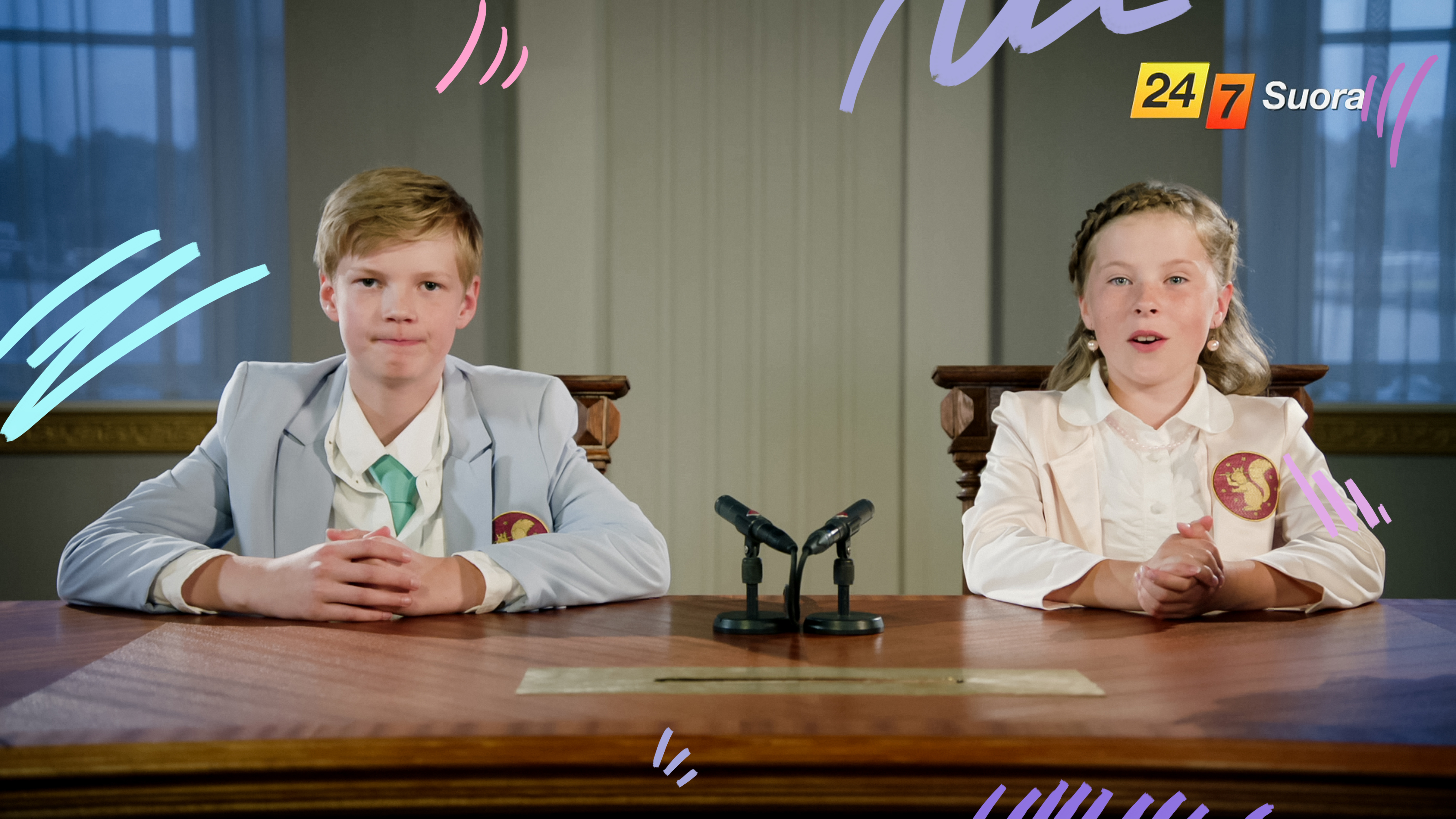"description": "Kreisi jännitystarina Suomesta, jossa valta on lapsilla ja maata johtaa kaksi presidenttiä, 11-vuotias Lenni ja 10-vuotias Sofia. Kaikki sujuisi hienosti, ellei Suomen ilkein pahiskolmikko yrittäisi kaikin keinoin pilata lasten hankkeet ja saada vallan itselleen. Pysyykö valta lapsilla vai voittavatko pahikset sittenkin?\n\nLasten tasavalta kokonaisuudessaan Areenassa!\n\n(Sarjan alkuperäinen TV-traileri vuodelta 2020)",