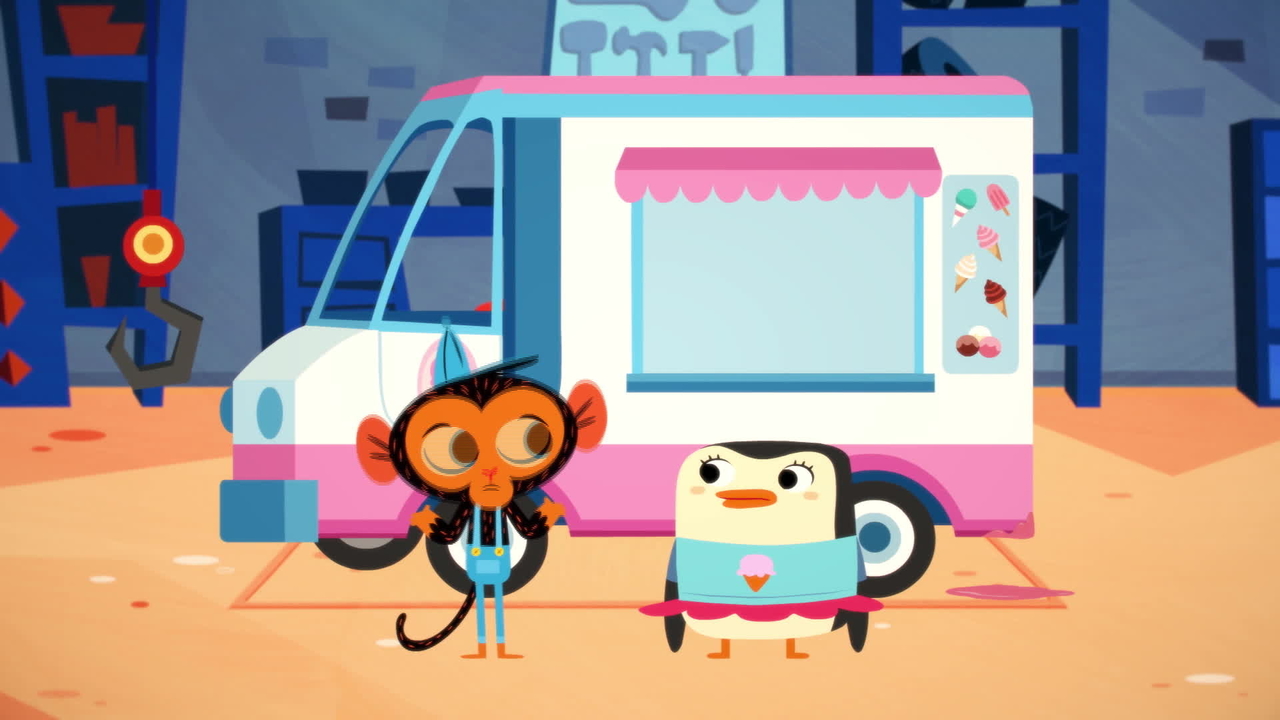 Kanadalainen 18-osainen 2D-animaatio apinamekaanikosta, joka osaa korjata kaikkien kaupunkilaisten kulkupelit korjaamossaan. Card JSON{