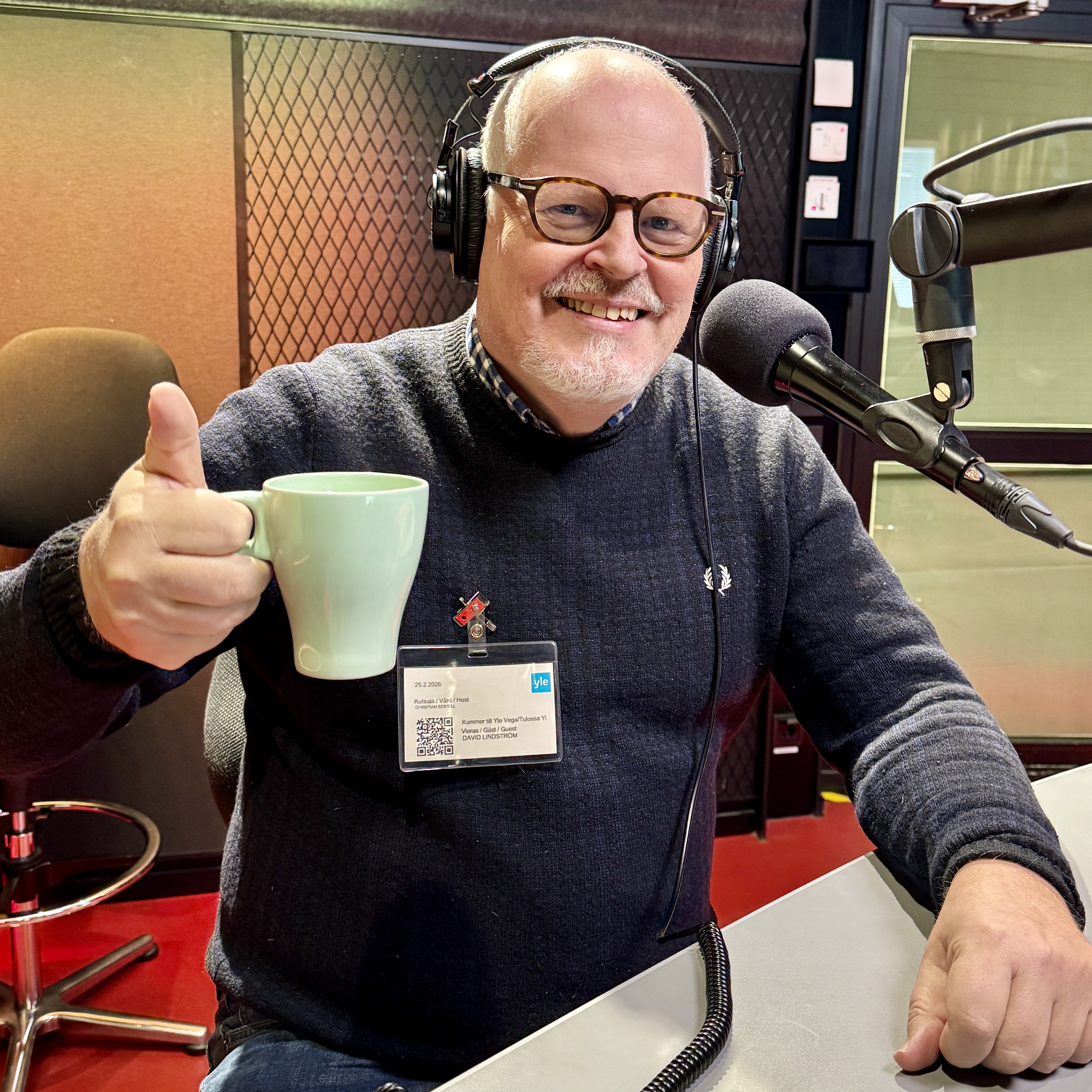 "description": "Kike Bertells lördagsgäst 28.2. är Eurovisionsfantasten David Lindström, som gjort en lång karriär som kommunikatör på Svenska Teatern. ",