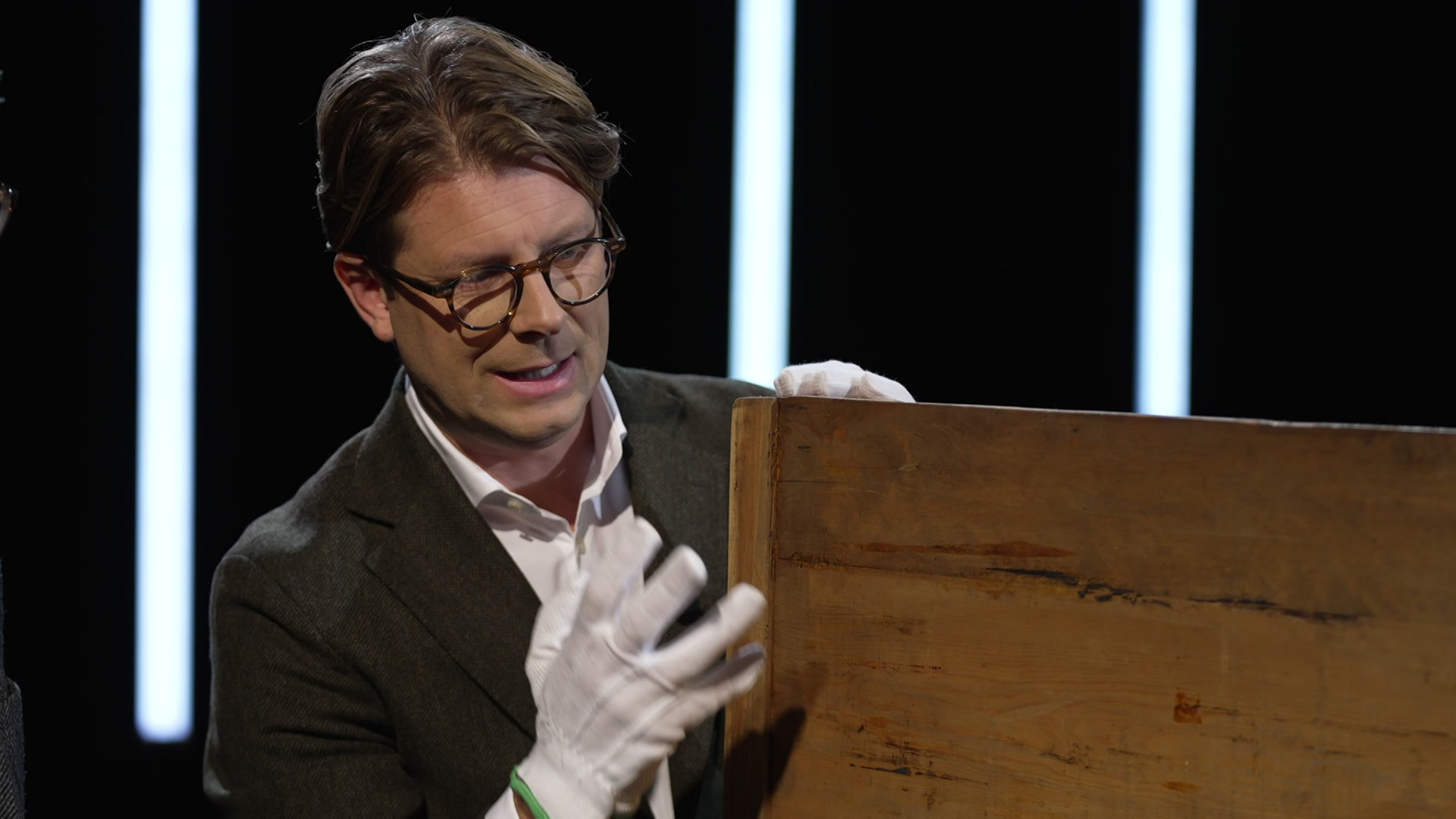 } Card 3. Onko mestarin 1700-luvun piironki aito? Description: Asiantuntijat tutkivat tarkasti piironkia, jonka epäillään olevan 1700-luvun huippuhuonekalutaiteilija Georg Hauptin käsialaa. Mitä tarinoita huonekalun yksityiskohdat kertovat ajastaan? Ja onko piironki todellakin aito?Anne Lundbergin kanssa asiaa pohtivat Antikrundan-ohjelman asiantuntija Richard Thunér ja kulttuurintutkija Ludwig Qvarnström.