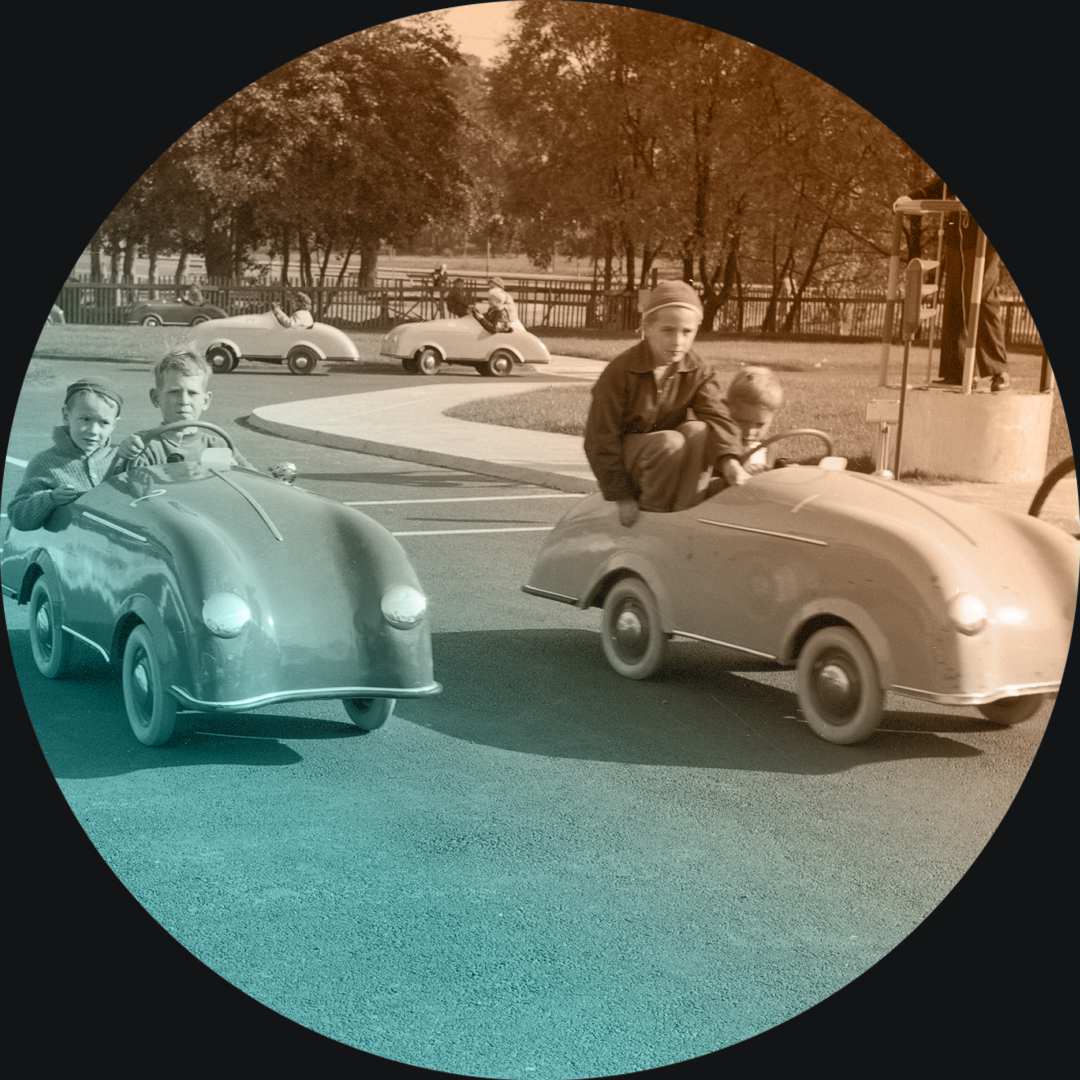 Kuvassa lasten liikennekaupunki Helsingissä 1959. Museovirasto. Kuvaaja: Pentti Viljanen.