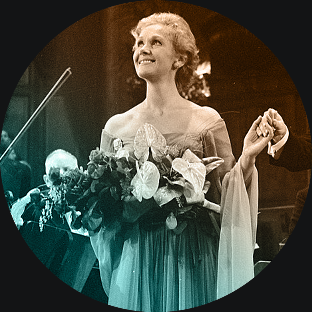 Kuvassa sopraano Ellabelle Davis Helsingin kaupunginorkesterin solistina Yliopiston juhlasalissa 13. kesäkuuta 1954. Museovirasto / JOKA / Otavamedia / TV-Kuva Oy.
