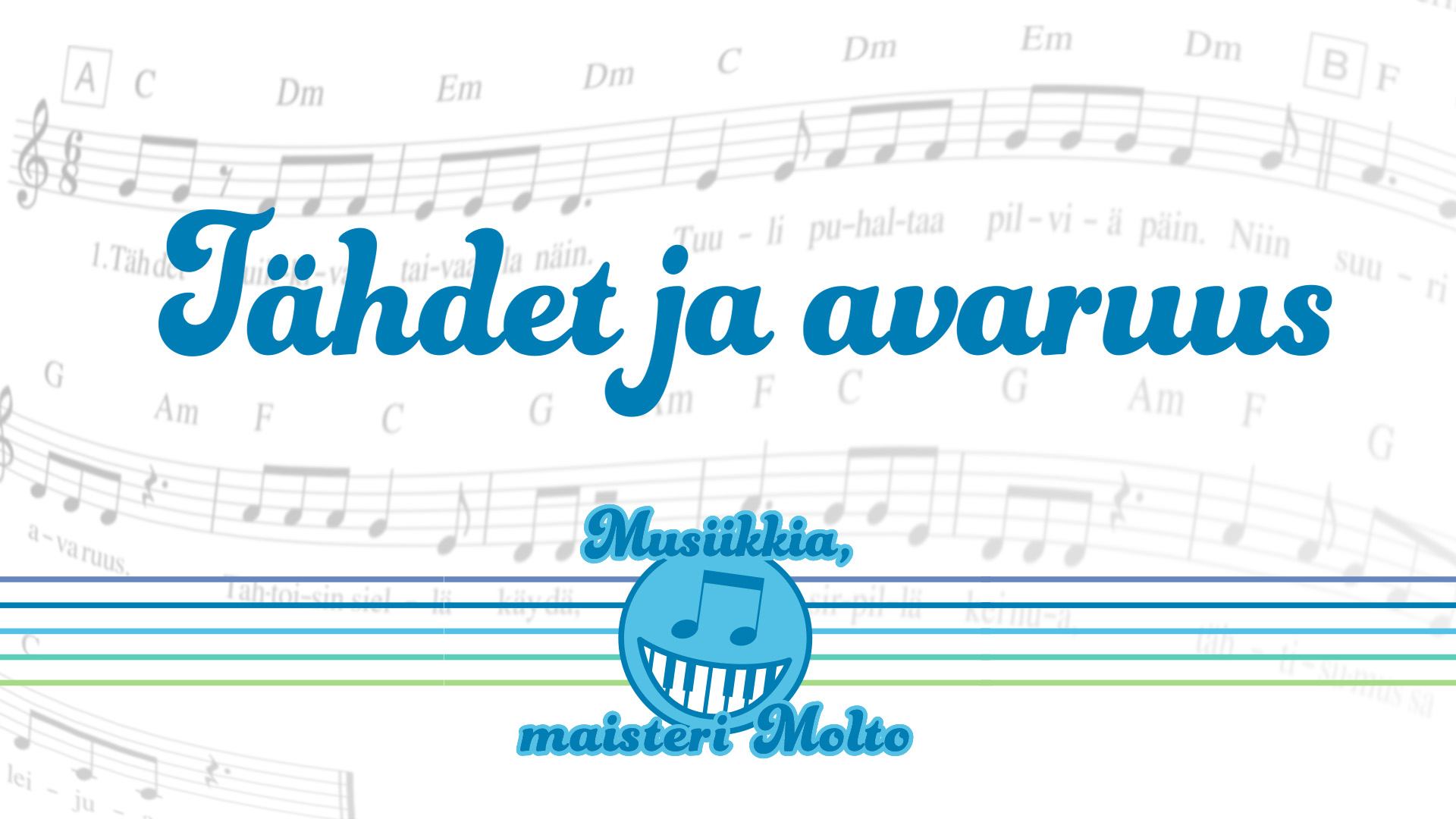 "description": "Maisteri Molto esittää kappaleen Tähdet ja avaruus.\n\nsäv. san. Isa-Eerika Lehto\nsov. Isa-Eerika Lehto, Katja Lappi, Anssi Salminen ja Kukka Lehto",
