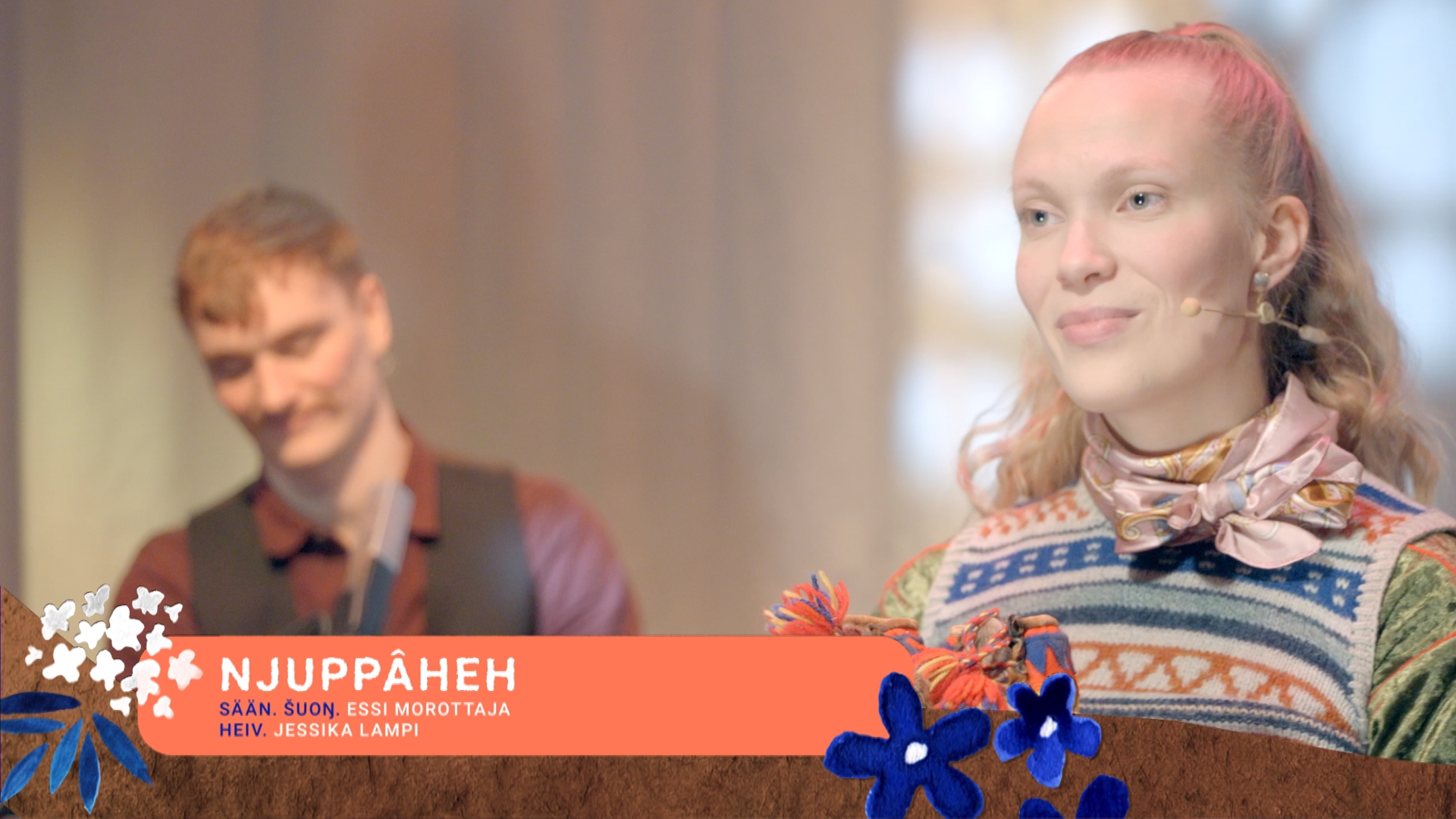 Tabs Tab 1 of 2 Jaksot Card 1. Njuppâheh Description: Šuoŋâpiäju lii lieggâ šoddâmpäikki lavluid Tiervâpuáttim muusiklâš máátkán oovtâst Essijn, Jessikain, Nicoin já párnáiguin.