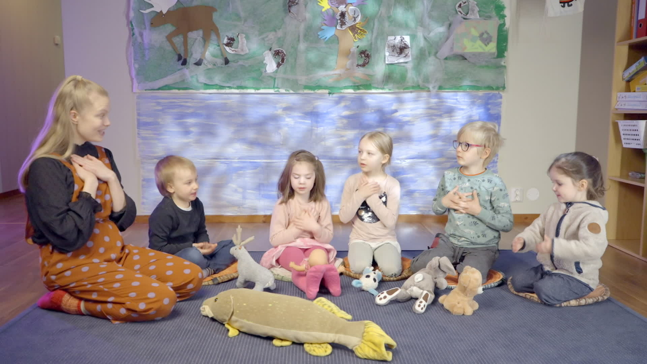 Inarinsaamenkielinen Sävelpesä. Tervetuloa musiikilliselle matkalle yhdessä Essin, Jessikan, Nicon ja lasten kanssa. Card JSON{