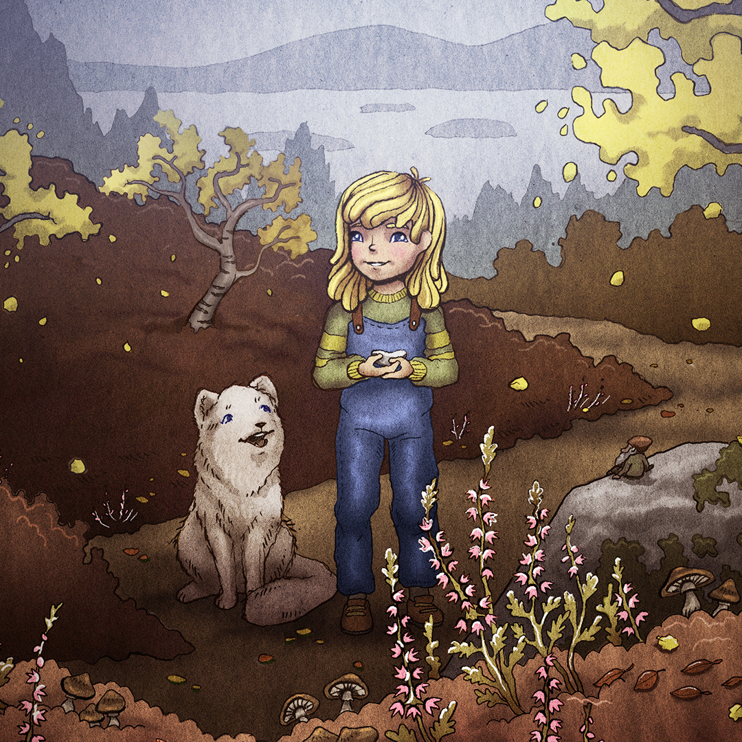 Card Description: Aami ja hänen naaliystävänsä Kajo kulkevat yhdessä tunturipoluilla luonnon ihmeiden ja taian keskellä.