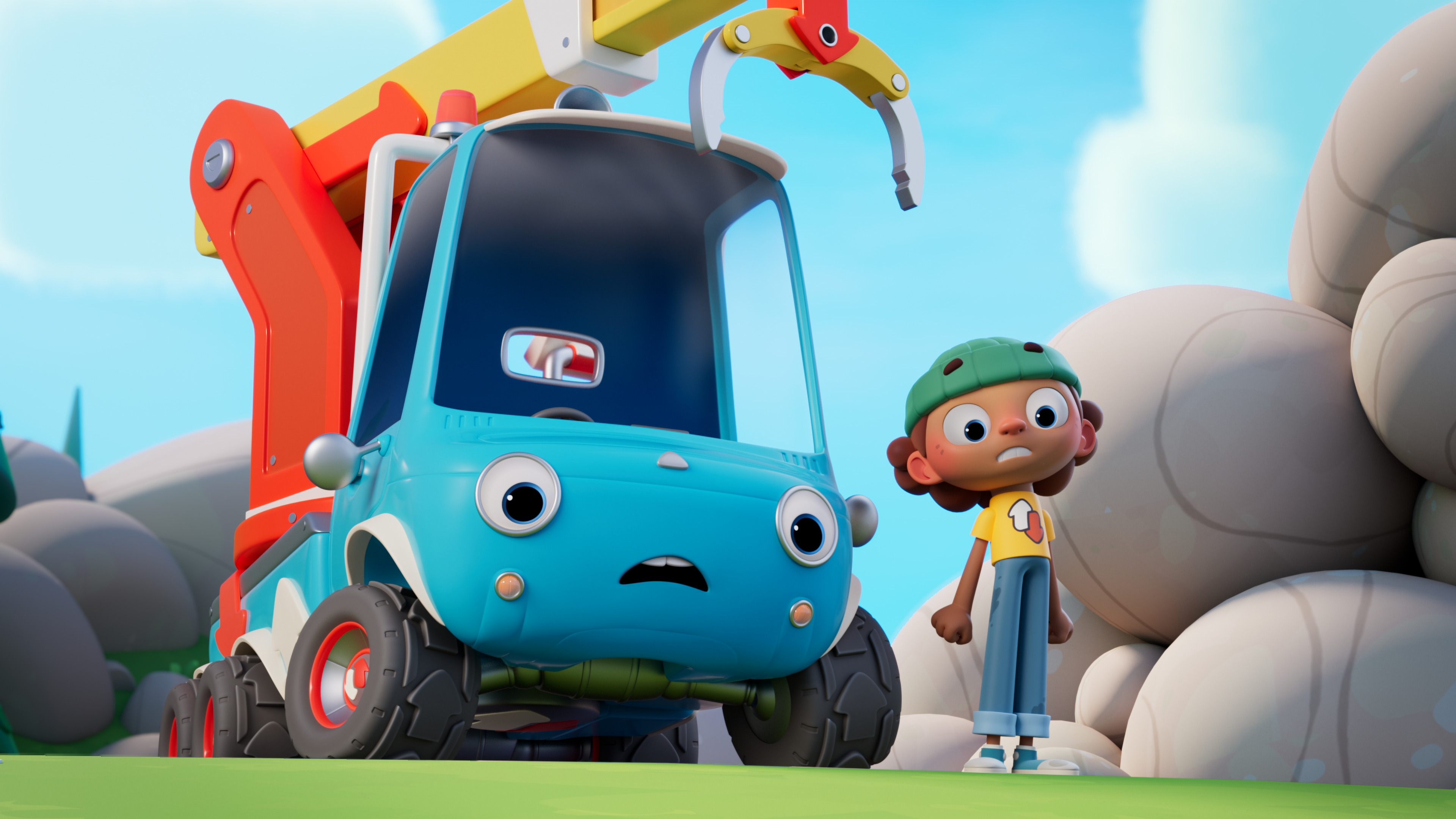 "description": "Linja-auto Teppo jää nalkkiin vuoristotielle kivivyöryn takia. Kaivurilla kivet voisi helposti siirtää, mutta ensin täytyisi päättää, mistä aloitetaan, ja sitten tehdä yhteistyötä.",