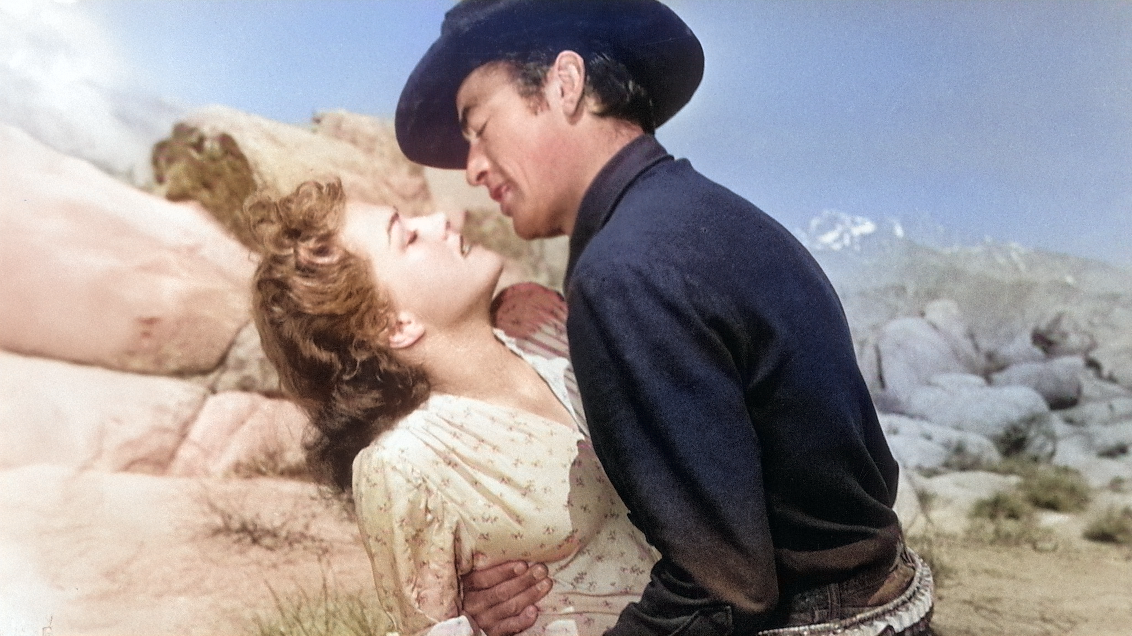 Header Card Description: Lännenelokuvassa lainsuojattomat pakenevat autiomaan halki aavekaupunkiin, missä he kohtaavat kaksi kullanetsijää. Pääosissa: Gregory Peck, Anne Baxter ja Richard Widmark. Ohjaus: William A. Wellman. (Yellow Sky, USA 1948) Card JSON{