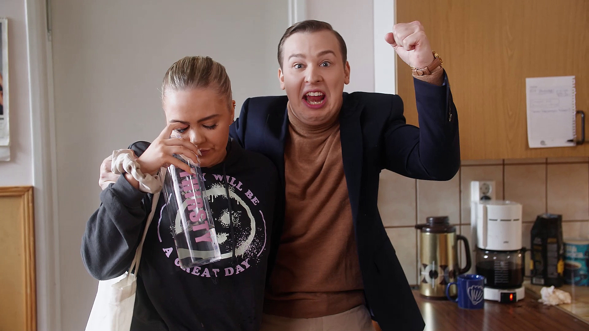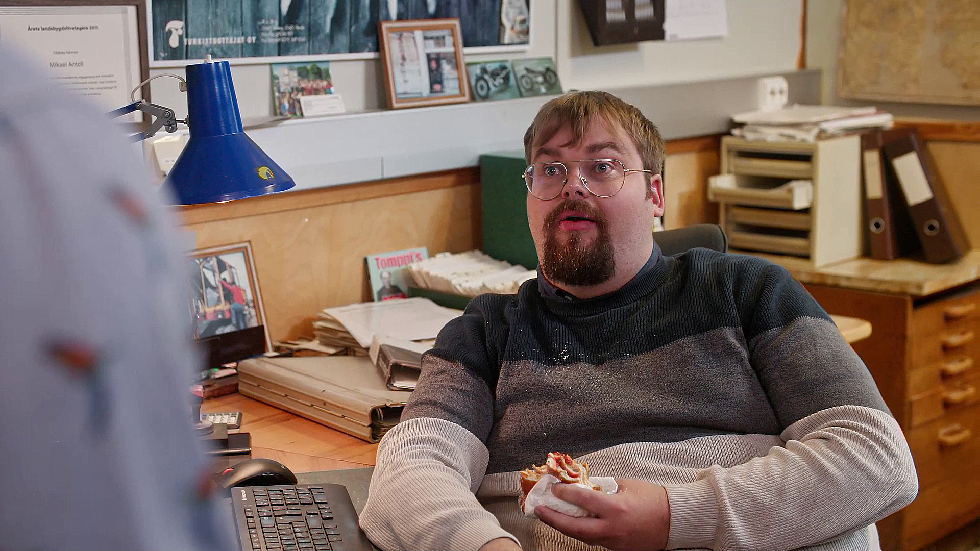 "description": "Jona yrittää luoda innostavampaa työpaikkaa, mutta Mikael vastaa omalla visiollaan täydellisestä työympäristöstä. Pian koko firma on jumissa makkaranpaiston ja pingispöydän välissä.",