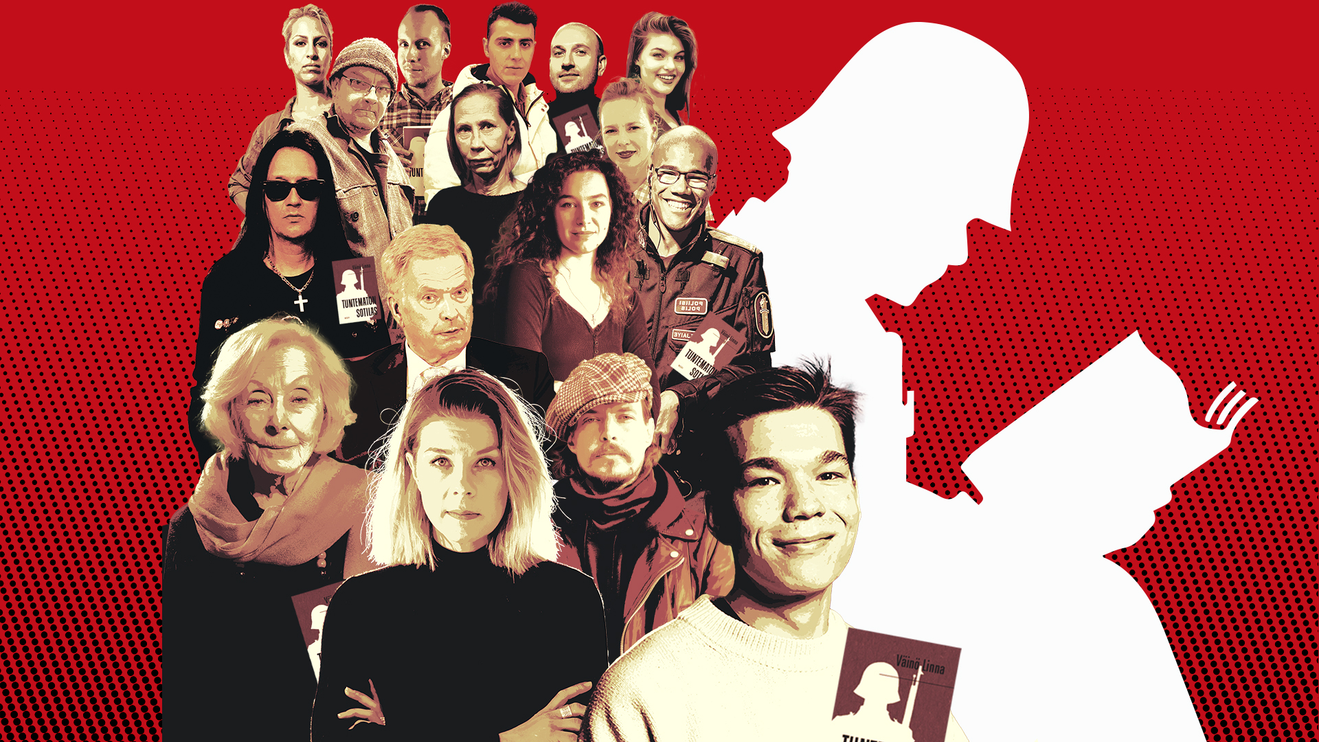 "description": "Mikä on sun lempisitaatti Tuntematon sotilas -romaanista? Torstaina 5.12. Yle Areenassa on luvassa 20 tunnin Tuntematon sotilas -lukumaraton! Suorassa lähetyksessä lukijoina nähdään mm. kaikki nää tyypit. 🤩",