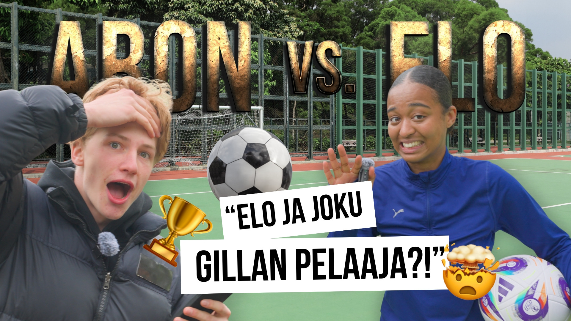 "description": "Aronilla ja Elolla on vuorokausi aikaa kasata itselleen voittava futisjoukkue. Miten käy, kun treeneihin saapuu vain kaksi pelaajaa? Entä riittääkö FC Gillalta saatu lisävahvistus takaamaan voittoa? Mysteeriboksit sekoittavat pakkaa, kun joukkueiden kokoonpanot laitetaan uusiksi ja salibandy-maali tuodaan kentälle. Haasteen päätteeksi häviäjää odottaa hikinen rangaistus.",